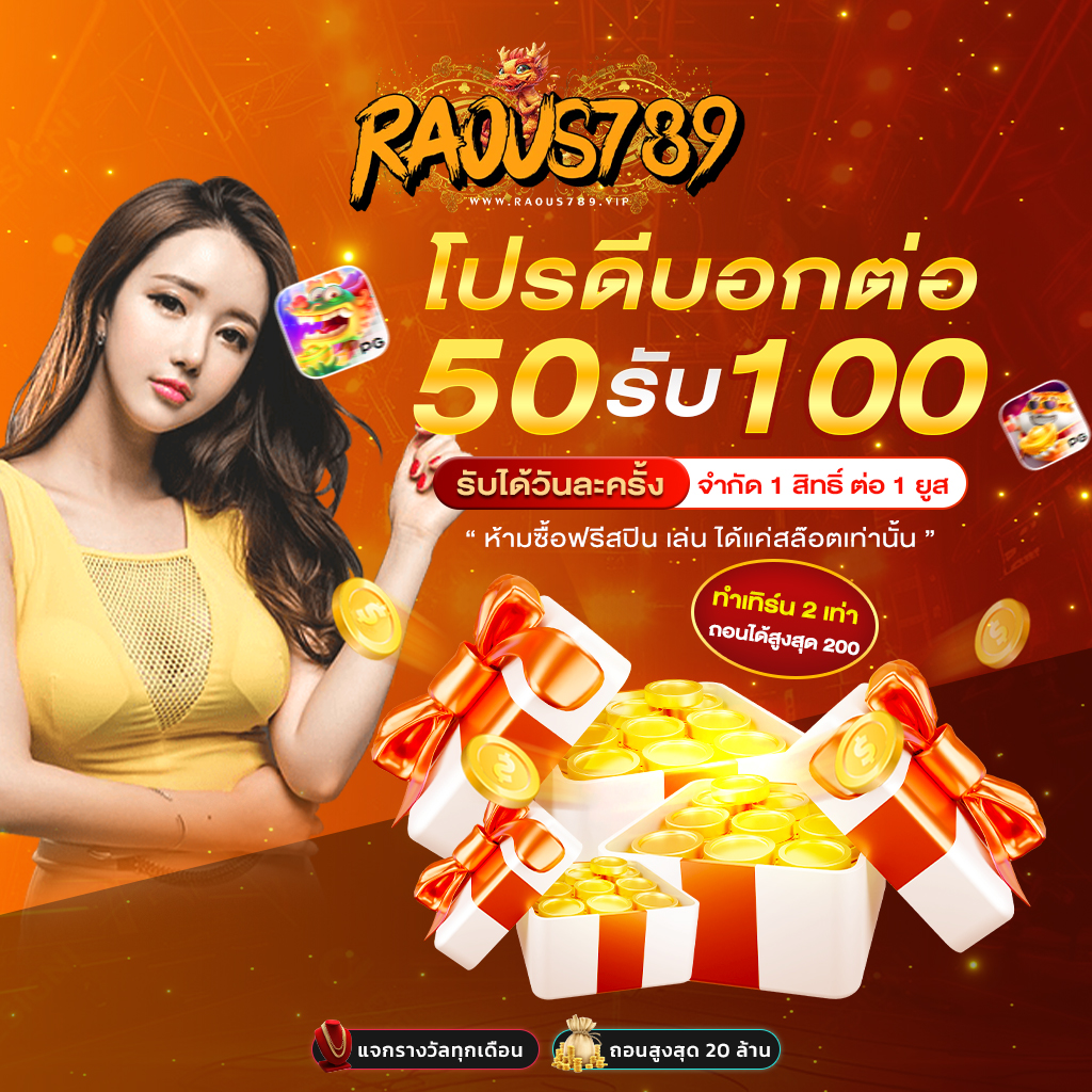 raous789 สล็อตฝาก 1 รับ 50 คืออีกโปรสายโหดสำหรับคนอยากลองของแรงด้วยงบเบา ฝากแค่บาทเดียวแต่ได้เครดิตเพิ่มหลายเท่า เล่นได้จริงทุกเกม เพราะเป็นเว็บตรงที่ใช้ API แท้จากค่ายใหญ่ ไม่มีการตัดฟีเจอร์ ไม่มีล็อกโบนัส เกมที่เปิดให้เล่นเป็นสล็อตแท้ทั้งหมด กราฟิกสวย ระบบลื่น เอฟเฟกต์จัดเต็ม แตกก็แตกจริง ไม่ใช่เกมเวอร์ชันทดลอง ใครที่อยากรู้ว่าเกมไหนแจกง่าย เกมไหนสายโบนัส โปรนี้ช่วยให้เห็นภาพชัดมาก เว็บสล็อตแนวนี้กำลังมาแรง เพราะตอบโจทย์คนที่อยากเริ่มจากงบน้อย แต่ยังได้ประสบการณ์แบบเต็มระบบ หมุนแล้วลุ้นจริง ไม่ต้องกลัวโดนดูดตั้งแต่สปินแรก